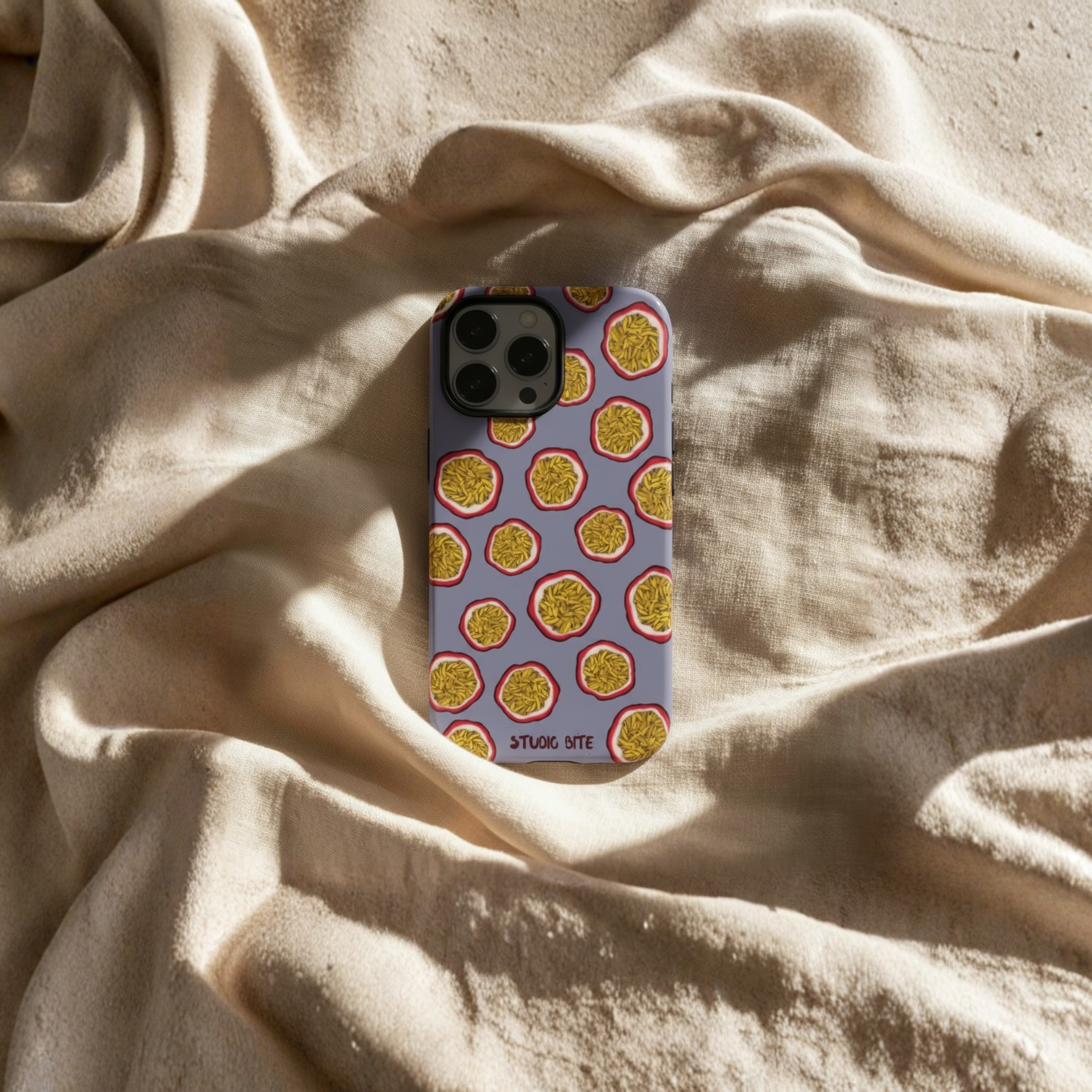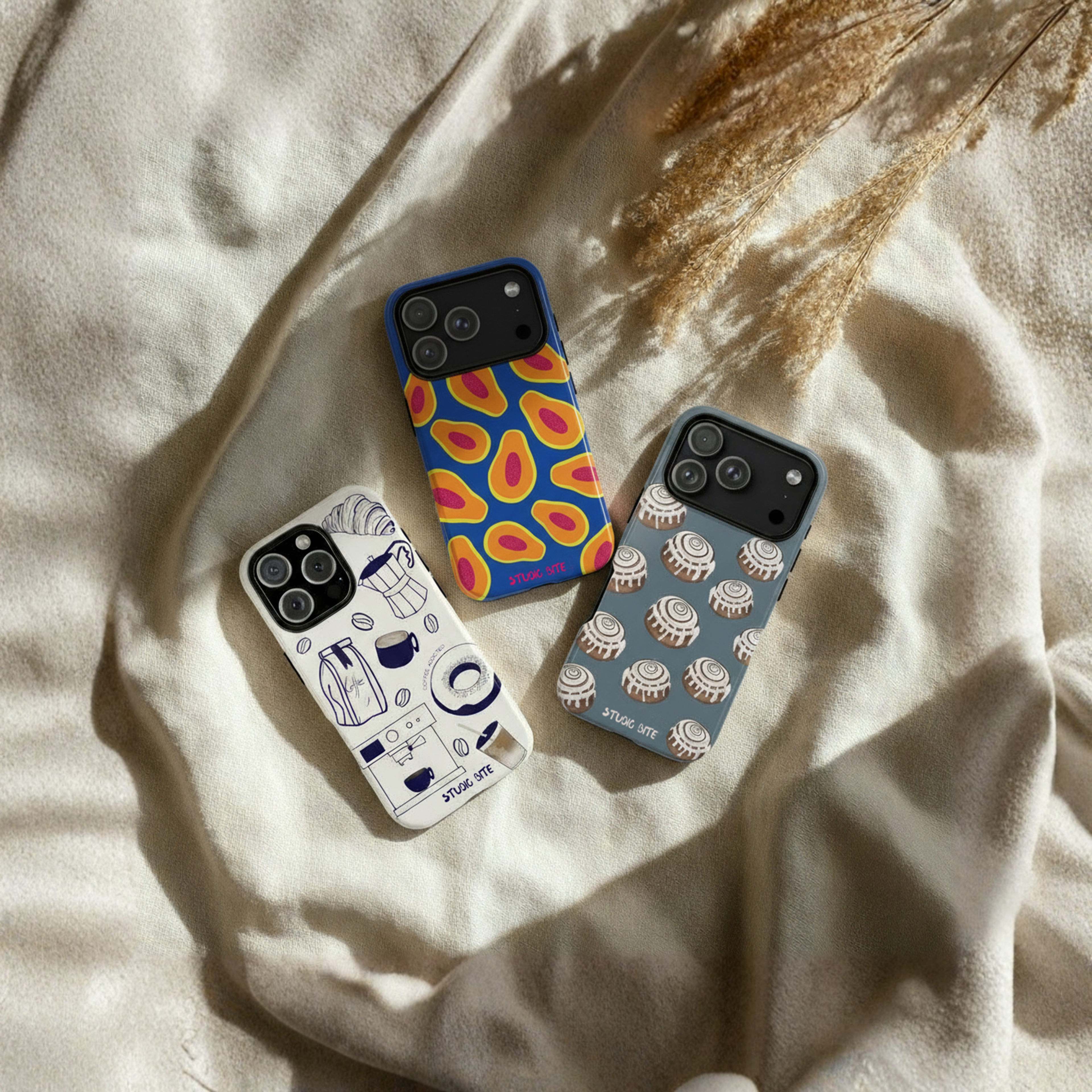 Richtig cooles Case. Das Blau wirkt in echt mega klar und die Papaya ist ein witziges Detail ohne kitschig zu sein. Sitzt stabil am Handy, nichts zu meckern.